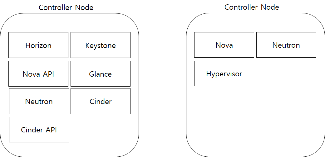 하나의 CentOS는 OpenStack을 제어하기 위한 구성요소를 가지고 있는 Controller Node이고